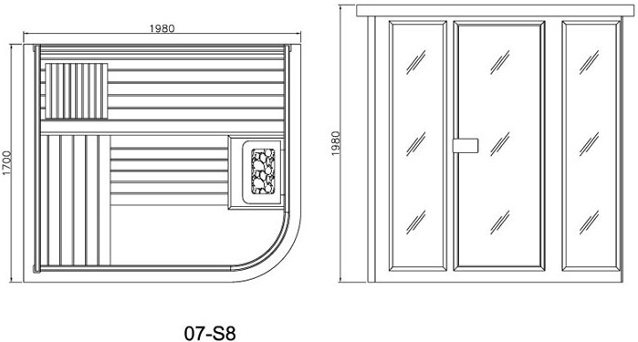 Простая, элегантная и вместительная традиционная финская сауна. Сборно-щитовая финская сауна H07-S8 фирмы KOY. Отделка хэмлок. Вес 215 кг.