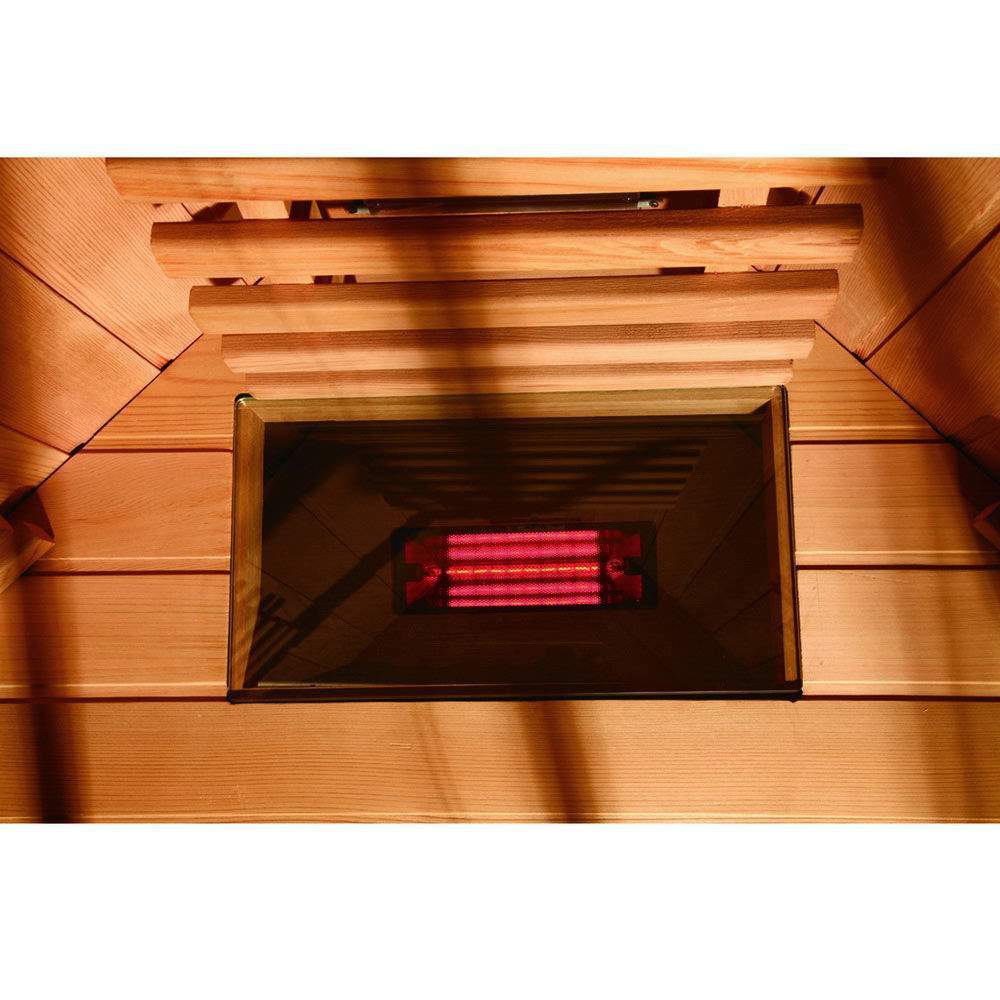 Сауна JK-R2202 изготовлена из прочной и долговечной древесины красного канадского кедра. Этот материал является наилучшим для изготовления сухих саун, так как обеспечивает быстрый и равномерный прогрев воздуха и при этом сам не нагревается до обжигающих кожу температур. Сама сауна JK-R2202 оснащена инфракрасными нагревателями общей мощностью 1950 Вт. Она отлично подойдет для дома или квартиры, так как не требует подключения дополнительной вентиляции и имеет компактные размеры.