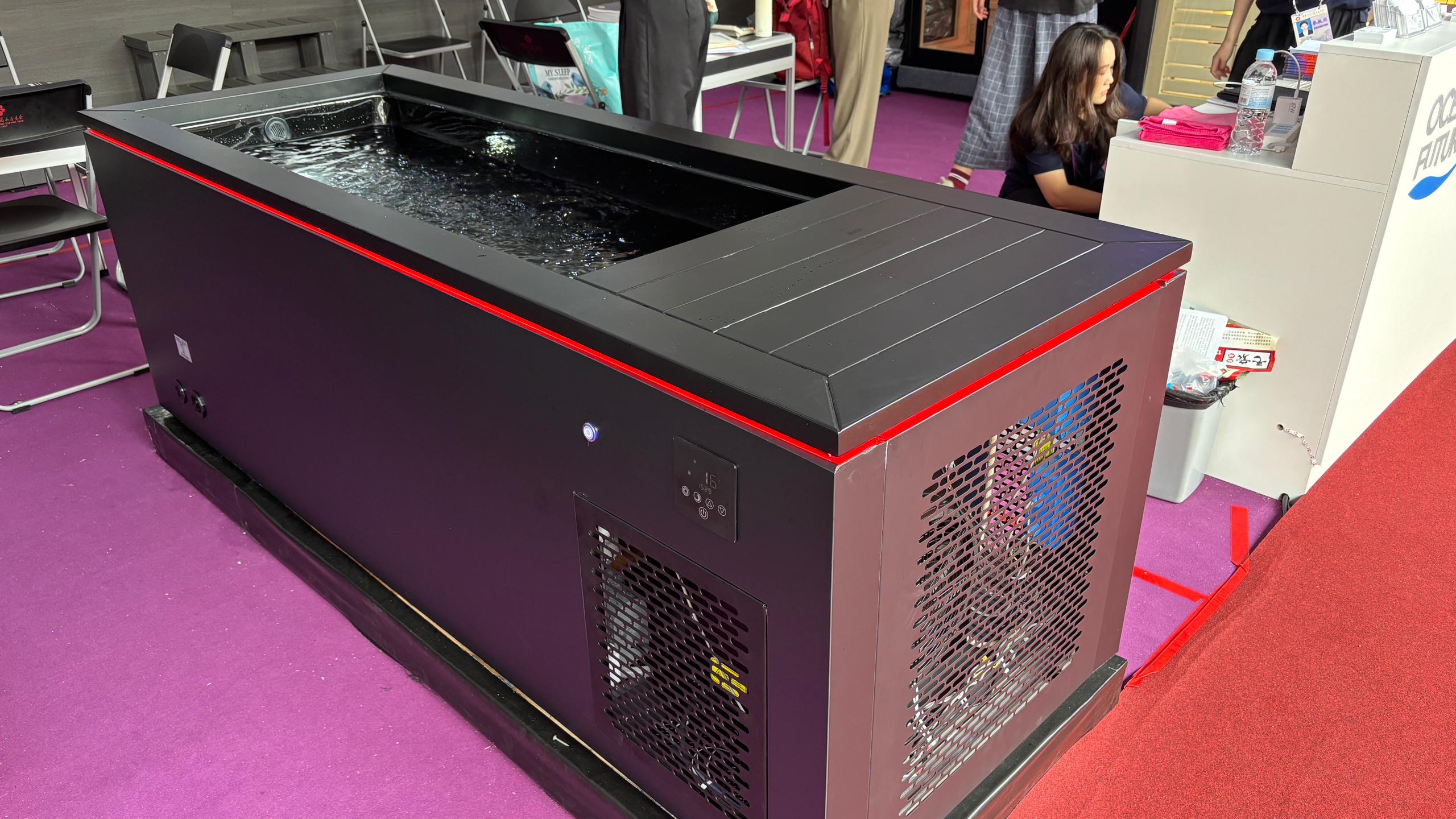 Встроенная система холодного водоснабжения мощностью 1 л.с. обеспечивает быстрое охлаждение воды и поддерживает заданную температуру в течение всей процедуры. Интегрированная система фильтрации, озонатор и дренаж поддерживают воду чистой, уменьшая частоту замены и упрощая обслуживание. Наличие перелива защищает от переливания воды через край при погружении нескольких человек подряд.