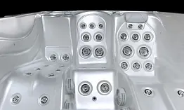 Размеры: 280 x 235 x h85 см. Объем: 2 500 л. Вес: 450 кг. Количество мест: 6 Лежачее место: Есть. Информация о товаре: чаша бассейна из материала Crystaltech© металлический каркас 24 верхних гидромассажных форсунки Ghost System 16 нижних гидромассажных форсунок Ghost System (опция для SPA) 24 аэромассажных форсунки (опция для SPA) два гидромассажных насоса пульт управления бассейном с ЖК дисплеем электронагреватель 3 кВт с регулятором температуры система фильтрации с песочным фильтром автоматическое налив бассейна датчик уровня автоматический слив бассейна хромотерапия по периметру из одиночных светодиодов для нижнего гидромассажа (опция) система озонирования воды хромотерапия по периметру из одиночных светодиодов для переливного борта (опция для SPA) хромотерапия по периметру из одиночных светодиодов для верхнего гидромассажа (опция) боковые панели (опция) теплоизолирующая крышка-чехол (опция)
